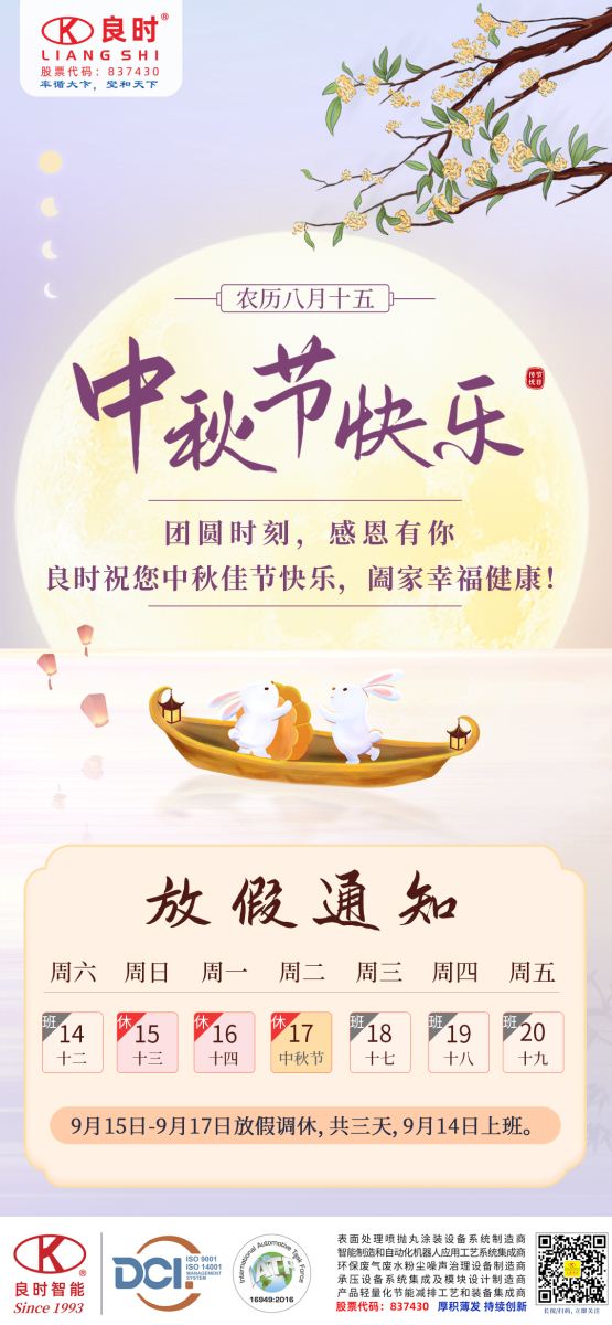 在這金秋送爽的美好時節(jié),我們迎來了中華民族的傳統(tǒng)佳節(jié)——中秋節(jié)。中秋節(jié)不僅僅是家人團聚的日子,更是我們共同慶祝豐收、傳遞祝福的美好時刻。在這個美好的日子里,上海良時智能科技股份有限公司,向每一位辛勤工作的同仁,以及長期以來給予我們支持與信任的客戶和伙伴們,致以最誠摯的問候和最美好的祝福!