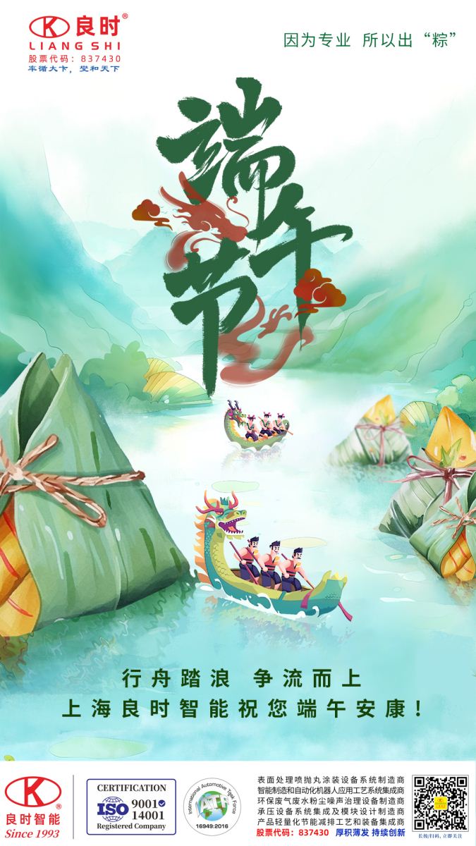 五月五日是端午,粽葉飄香話安康。上海良時智能科技股份有限公司(股票代碼:837430)向全體員工、客戶及合作伙伴致以節(jié)日祝福!感謝一路相伴,愿以匠心傳承文化,以創(chuàng)新回饋信賴。