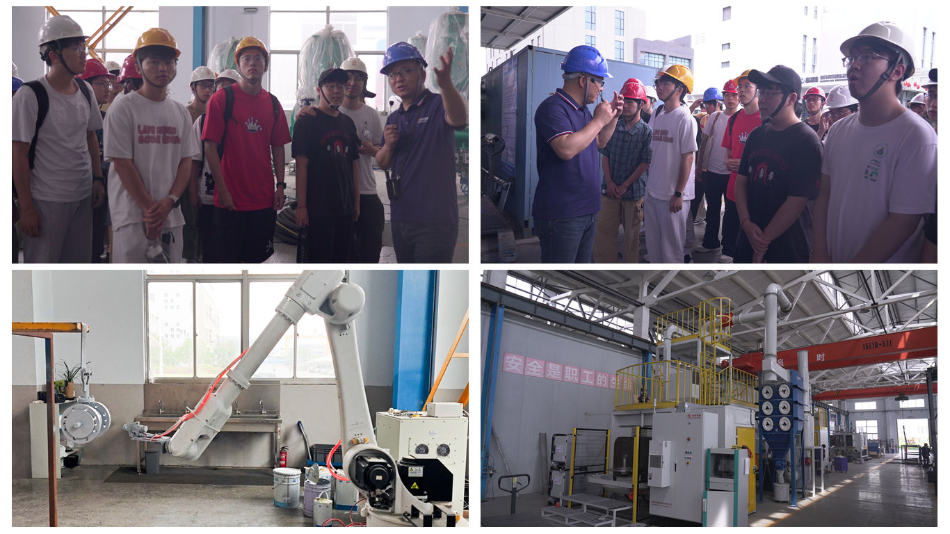 在參觀環(huán)節(jié),師生們走進(jìn)良時(shí)智能的工廠車間,近距離觀摩了各類先進(jìn)設(shè)備的生產(chǎn)與運(yùn)作過(guò)程。車間內(nèi),用于閥門噴涂的AI智能免編程噴涂機(jī)器人正在精密的測(cè)試中。另一臺(tái)適用于航空精密零部件的雙機(jī)器人數(shù)控噴丸強(qiáng)化設(shè)備正在安裝調(diào)試,它采用了雙機(jī)器人多槍協(xié)作技術(shù),展現(xiàn)出高度的自動(dòng)化與智能化水平。師生們不時(shí)駐足觀察,對(duì)設(shè)備的精密構(gòu)造和高效性能嘖嘖稱贊,更直觀地感受到了良時(shí)智能在技術(shù)研發(fā)與生產(chǎn)制造上的實(shí)力。