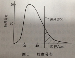 (1)粒徑(料度)分布。粉末粒子的直徑稱為粒度,粒度的分布范圍稱為粒度分布。粉末涂料粉碎后用篩除去粗的顆粒,得到規(guī)定粒度的粒子。在比較新粉的回粉的性質(zhì)時(shí)確定篩目是必要的(見圖1)。