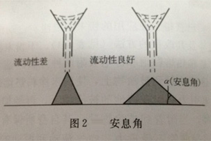 (3)安息角。粉末積存難易程度的大致標(biāo)準(zhǔn)供料斗設(shè)計(jì)和確定網(wǎng)管內(nèi)網(wǎng)速時(shí)參考(見圖2)。