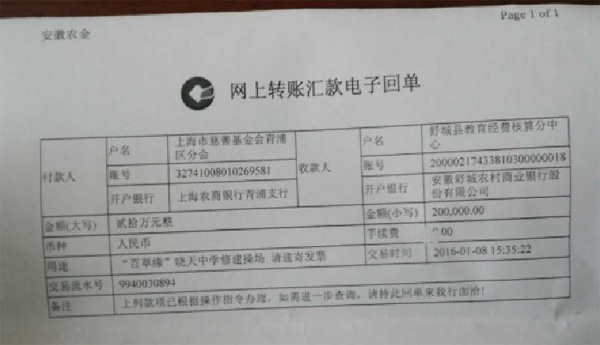 是的,新操場(chǎng)修好了,大別山曉天中學(xué)孩子們也笑了,由上海良時(shí)智能科技股份有限公司牽頭善款20萬(wàn)元已匯入舒城縣教委轉(zhuǎn)入曉天中學(xué)了,望大別山的學(xué)子們平時(shí)多鍛煉有了強(qiáng)健的身體更好地投入到學(xué)習(xí)中去,爭(zhēng)創(chuàng)好成績(jī)?yōu)閷W(xué)校爭(zhēng)光。