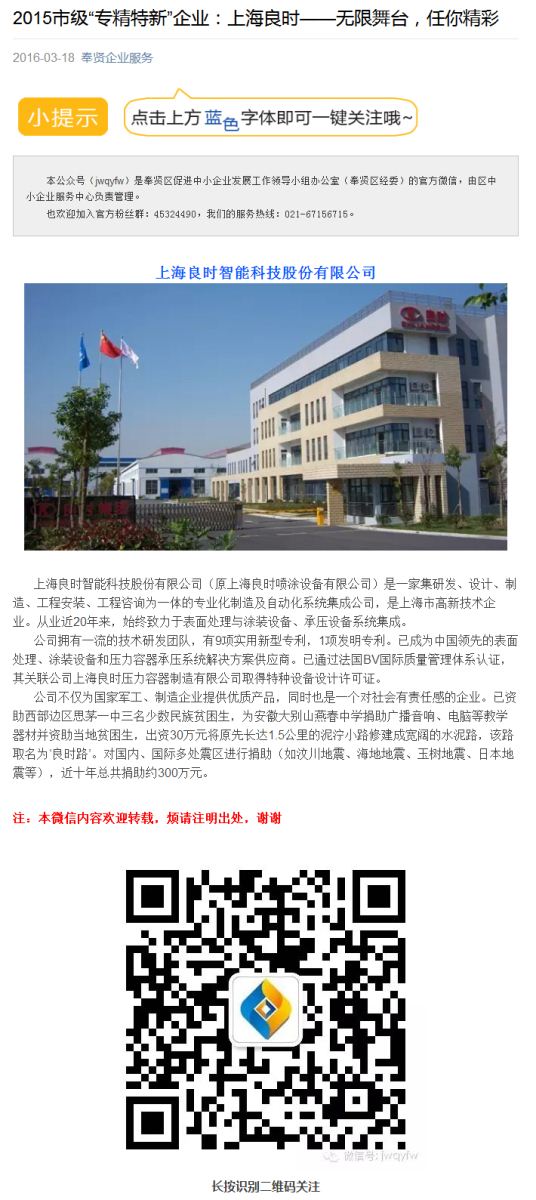 上海市人民政府經(jīng)濟(jì)和信息化委員會(huì)近日發(fā)布,上海良時(shí)智能科技股份有限公司等企業(yè)獲得2015年度上海“專精特新”中小企業(yè)榮譽(yù)稱號(hào)。