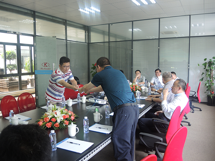 參觀(guān)完畢后,凌董向來(lái)賓們介紹了良時(shí)20多年的發(fā)展歷程并簡(jiǎn)明扼要的闡述了在表面處理工程及智能?chē)姃佂璺矫媪紩r(shí)未來(lái)的發(fā)展方向,及我公司發(fā)展動(dòng)向。