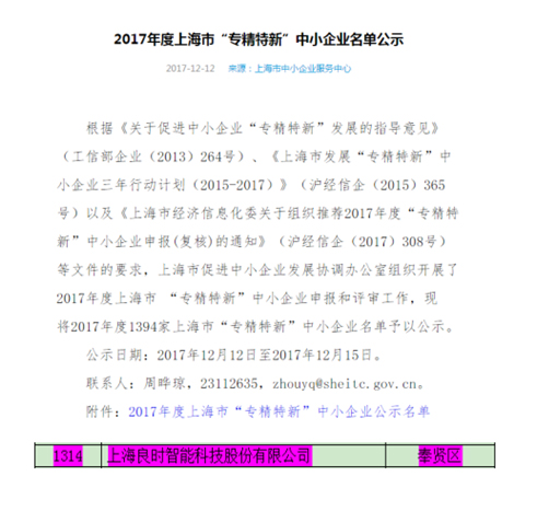 近日,上海市經(jīng)濟(jì)和信息化委員會公布了2017年度上海市“專精特新”明星企業(yè),上海良時智能(股票代碼:837430 厚積薄發(fā) 持續(xù)創(chuàng)新)成功入選,再次榮獲上海市“專精特新”企業(yè)榮譽(yù)稱號!根據(jù)工業(yè)和信息化部《“十二五”中小企業(yè)成長規(guī)劃》和市委、市政府“創(chuàng)新驅(qū)動發(fā)展,經(jīng)濟(jì)轉(zhuǎn)型升級”的總體要求,經(jīng)上海市經(jīng)濟(jì)和信息化委員會等12個部門研究決定,把具有“隱形冠軍”培育潛質(zhì)、符合“專、精、特、新”特點(diǎn)的企業(yè)定義為“專精特新”企業(yè),并每年實(shí)施嚴(yán)格評選工作。