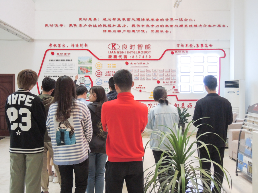 此次參觀交流分為三個部分,首先,同學(xué)們對一樓良時企業(yè)文化墻進行了參觀,讓他們更多地了解良時20多年來的發(fā)展歷程。接著同學(xué)們一起參觀了公司生產(chǎn)車間,行政部羅主任向大家一一講解同學(xué)們提出的問題,通過參觀與羅主任細致的講解,同學(xué)們對良時的產(chǎn)品也有了更直觀的感受。