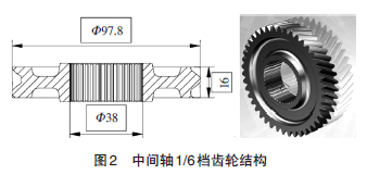 試驗零件為某混動項目中間軸1/6檔齒輪,齒輪結(jié)構(gòu)見圖2,磨齒后齒面組織殘奧2級,表面硬度710HV30、有效硬化層深0.65mm,均在技術(shù)要求范圍內(nèi)。噴丸前齒面粗糙度見表3,齒形精度見表4,可見噴丸前齒面粗糙度良好,齒形曲線平順。