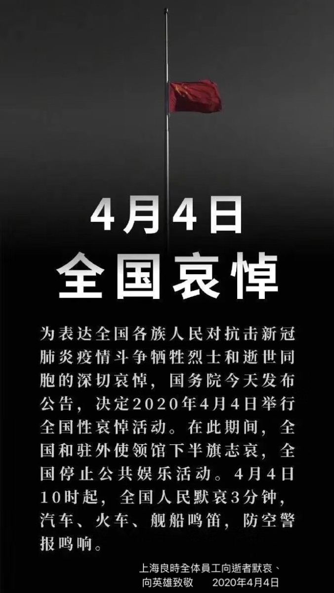 上海良時(shí)向抗擊新冠肺炎疫情斗爭犧牲的烈士和逝世的同胞致以深切的哀悼和崇高的敬意!