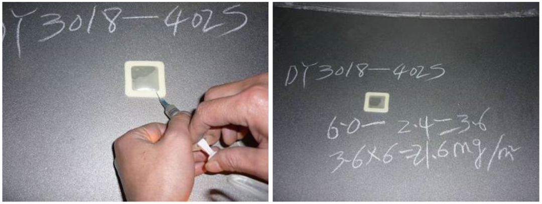 損壞面積可由船東、船廠和涂料供應(yīng)商三方開工前協(xié)議中確定的檢查員判定。當(dāng)有爭議時(shí),對大面積損壞可采用照片劃線法確定,對線狀損壞則直接測取長度。