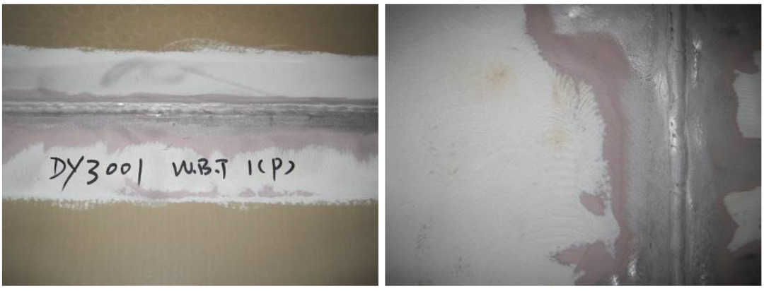 分段上的預(yù)涂應(yīng)至少進(jìn)行兩道預(yù)涂和兩道噴涂。僅在焊縫區(qū)能證明涂層可滿足NDFT要求的范圍內(nèi),可減少第二道預(yù)涂,以避免不必要的涂層過厚。并在重涂前將桔皮,流掛,針孔,暗流等油漆缺陷處理后,清潔將大面膜厚標(biāo)出,使噴涂人員能良好的控制整個(gè)油漆涂層的膜厚。