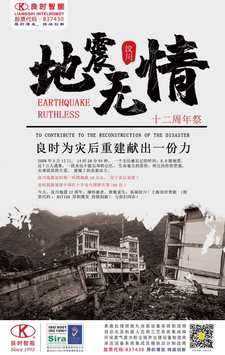 今天,汶川地震12周年,緬懷逝者,致敬重生,祝福汶川!上海良時智能(股票代碼:837430 厚積薄發(fā) 持續(xù)創(chuàng)新)與你們同在!