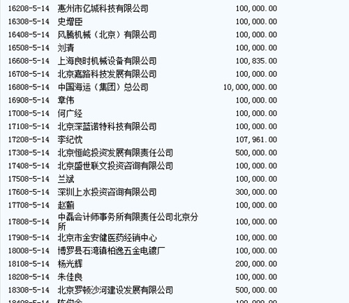 2008年512汶川大地震全國企業(yè)和個人向中國紅十字會捐款時間新浪網(wǎng)排名(10萬元以上)