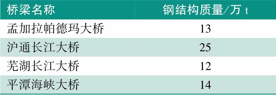 近年來,我國每年新增橋梁約2.8萬座,是使用鋼材的重要領域。也是加快推進鋼結(jié)構(gòu)橋梁的難得發(fā)展機遇。近些年,大型鋼橋越來越多,以本公司所建鋼橋為例,繼港珠澳大橋之后,目前在產(chǎn)項目中,10萬t以上的項目就有幾座,如表1所示。