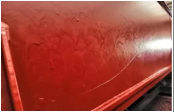 糾正預(yù)防:(1)噴槍與被涂物表面保持合適的距離,控制好移動速度,減少單次噴涂重疊次數(shù),及時更換被磨損的噴嘴,控制漆膜厚度;(2)涂料稀釋適量,合適的噴漆黏度;(3)保持被涂表面(或涂料本身)合適的溫度以及施工條件;(4)聯(lián)系油漆公司,由其協(xié)助解決因涂料觸變機理不夠充分,導(dǎo)致的流掛。