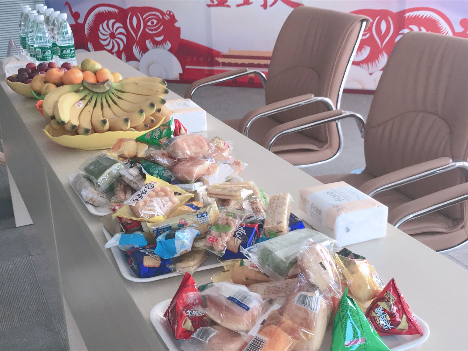 公司為來訪的學(xué)生準(zhǔn)備了豐盛的小點心和水果
