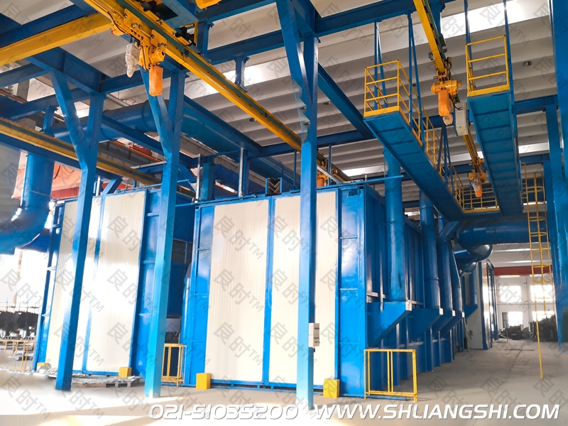 上海良時(shí)智能自行葫蘆噴拋丸噴漆烘干涂裝線