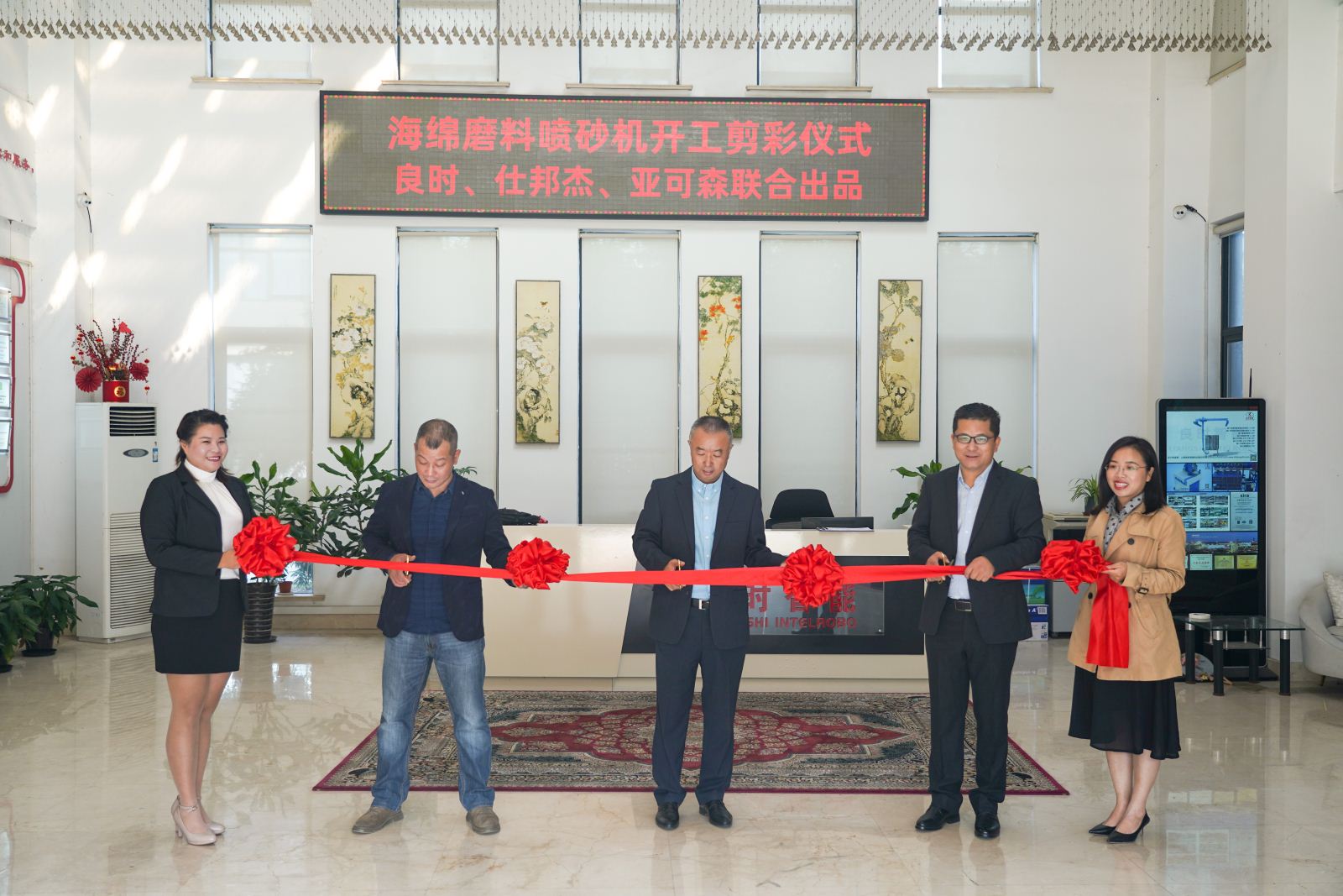 9時38分,由上海良時、仕邦杰、亞可森聯(lián)合出品的海綿磨料噴砂機開工剪彩儀式正式開始。該海綿噴砂磨料及智能噴砂設備經(jīng)過良時、仕邦杰、亞可森三家公司多年的不懈努力、開發(fā)和創(chuàng)造,在行業(yè)的技術基礎上更上一層樓,達到并超越國際同類產(chǎn)品。