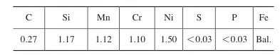 表1 30CrMnSiNi2A鋼化學(xué)成分(質(zhì)量分?jǐn)?shù))(%)