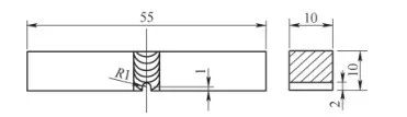試驗材料采用的是航空用30CrMnSiNi2A鋼,供貨熱處理狀態(tài)為900℃淬火+290℃回火3h+空冷,其化學(xué)成分見表1。試驗材料的尺寸為200mm×100mm×11mm,為模擬此類航空零件的TIG焊修復(fù)工藝,將試驗材料的焊接坡口加工成如圖1所示尺寸。為最大程度地減少焊接缺陷的產(chǎn)生,首先對焊接坡口及附近區(qū)域進行噴砂處理并采用蘸有丙酮的干凈棉布擦拭干凈,然后采用 φ3mm的H18CrMoA焊絲對坡口進行TIG焊修復(fù),保證坡口完全被填充,在TIG焊修復(fù)前后均需要將試驗材料放置在熱處理爐中加熱至(260±5)℃保溫2~3h,最后隨爐冷卻至室溫。