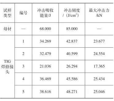 圖7 TIG焊修復(fù)接頭沖擊曲線