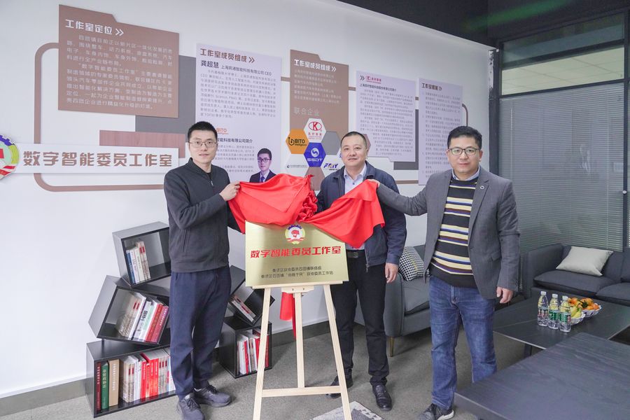 鎮(zhèn)黨委委員、委員聯(lián)絡組副組長顧中演,區(qū)政協(xié)委員龔超慧,上海良時智能科技股份有限公司董事長凌建民共同為“數(shù)字智能”委員工作室揭牌。