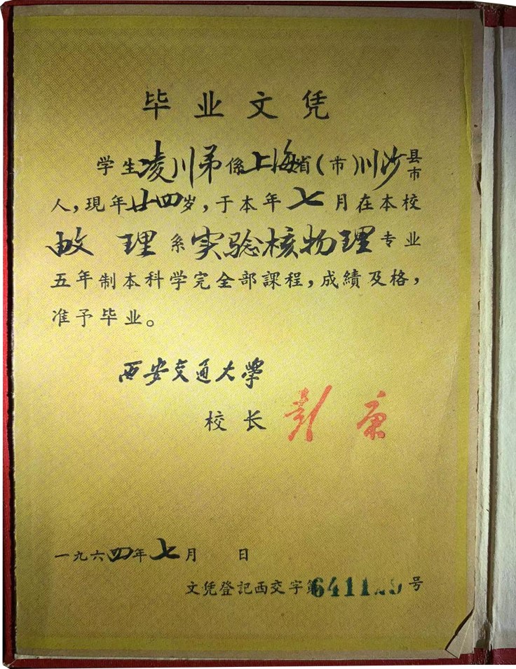一九四九年五月中旬,浦東解放。從此,她在和平的環(huán)境中,一路高歌,念完了高中。一九五九年考入西安交通大學(xué)實(shí)驗(yàn)核物理專業(yè)。