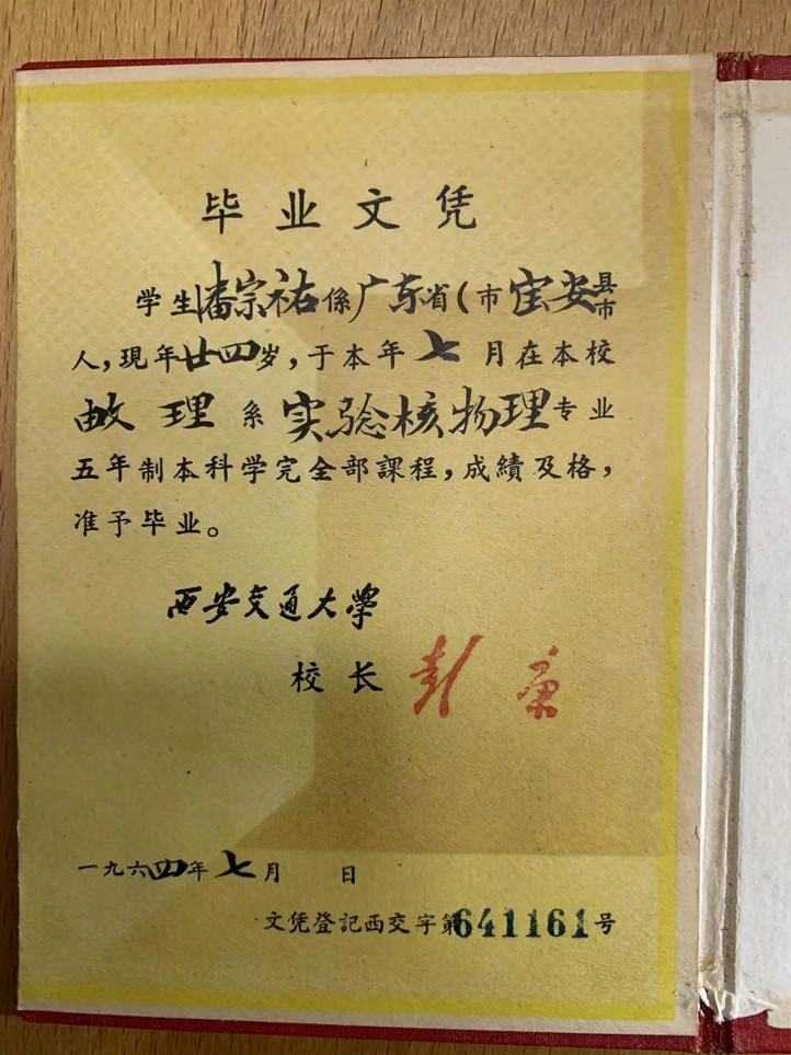 潘宗佑畢業(yè)證書