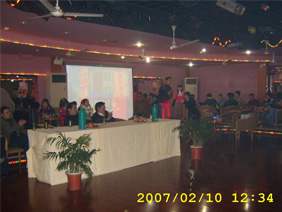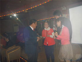 下午1:30,公司主要部門的領(lǐng)導(dǎo)以及兄弟單位的來(lái)賓也來(lái)到聯(lián)歡會(huì)場(chǎng)并坐在主席臺(tái)和公司員工中間。期待已久的時(shí)刻終于到來(lái)了,設(shè)計(jì)部劉之濱先生和市場(chǎng)部蘇云小姐笑容滿面地走到臺(tái)前,共同宣布了2007年新春聯(lián)歡會(huì)正式開(kāi)始。
