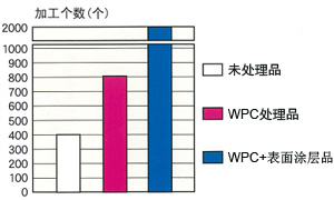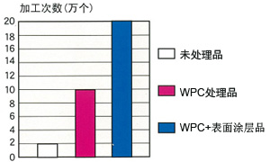 ★★ 比較測(cè)試 SKH51 冷鍛造模具 未處理品:2萬個(gè) WPC處理品:10萬個(gè) WPC+表面涂層品:20萬個(gè) 加工次數(shù)(萬個(gè))